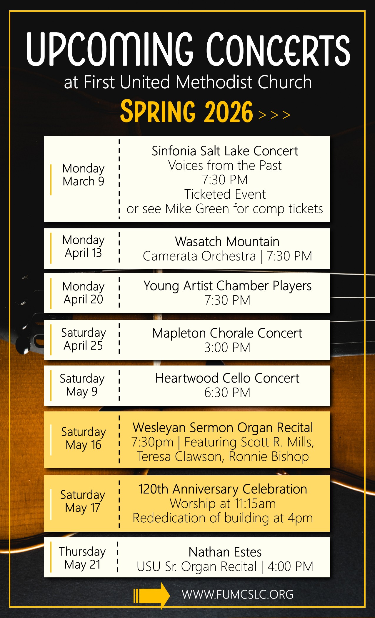 Our church participates in and hosts events to support the culture of our community. We hope you will join us for a concert, bible study, worship service or upcoming event soon!